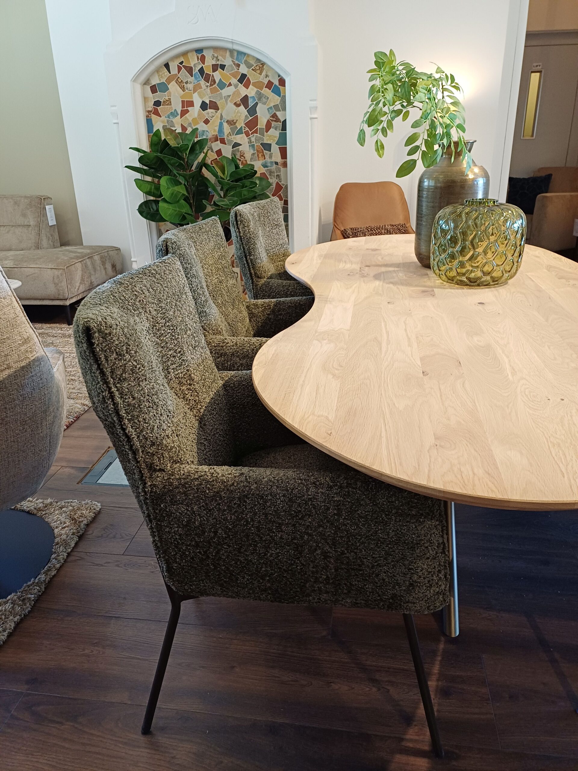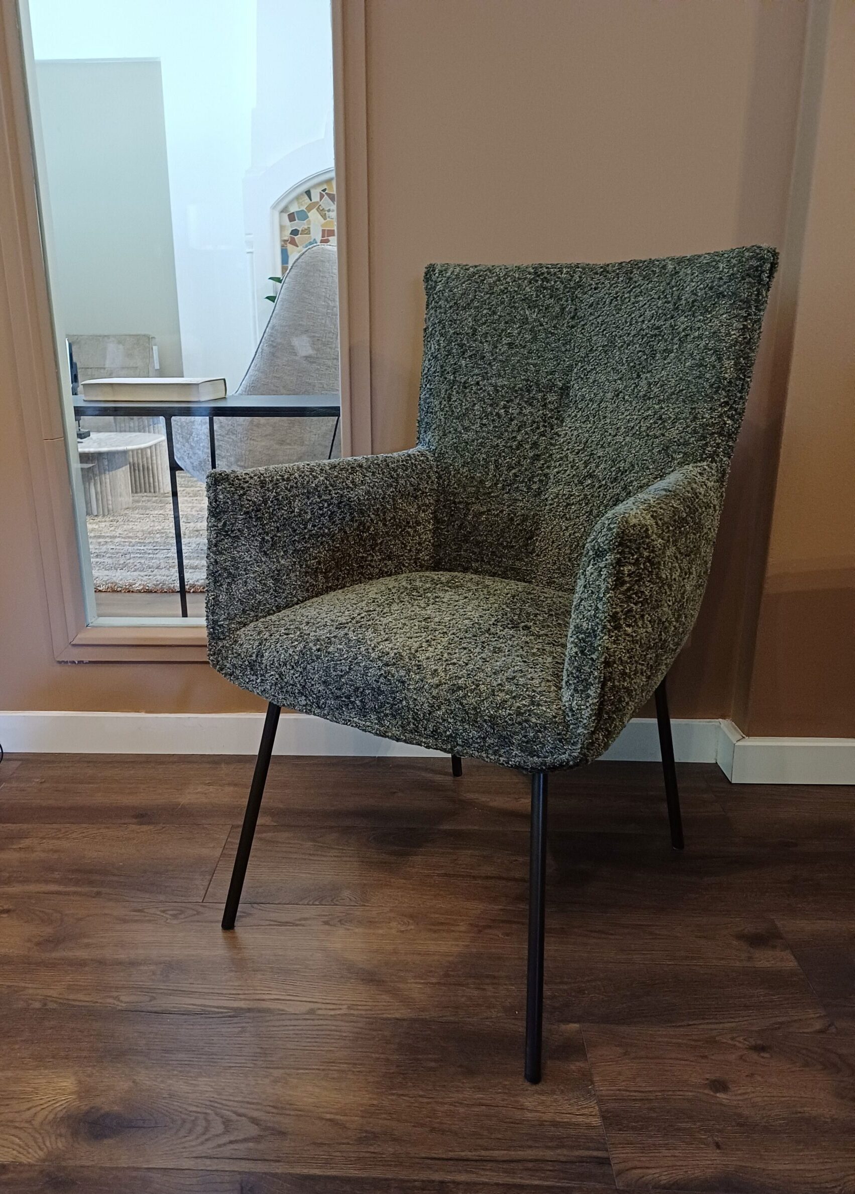 Categorie: Stoelen Armstoel Dino van H.E. Design is leverbaar in diverse stoffen of leder.Onderstel in diverse kleuren metaal.Ook leverbaar met spinpoot.Prijs vanaf € 445,-Gerelateerde producten Eetkamerstoel No. 267 Lees meer Bank Zilt Lees meer Stoel Conga Lees meer