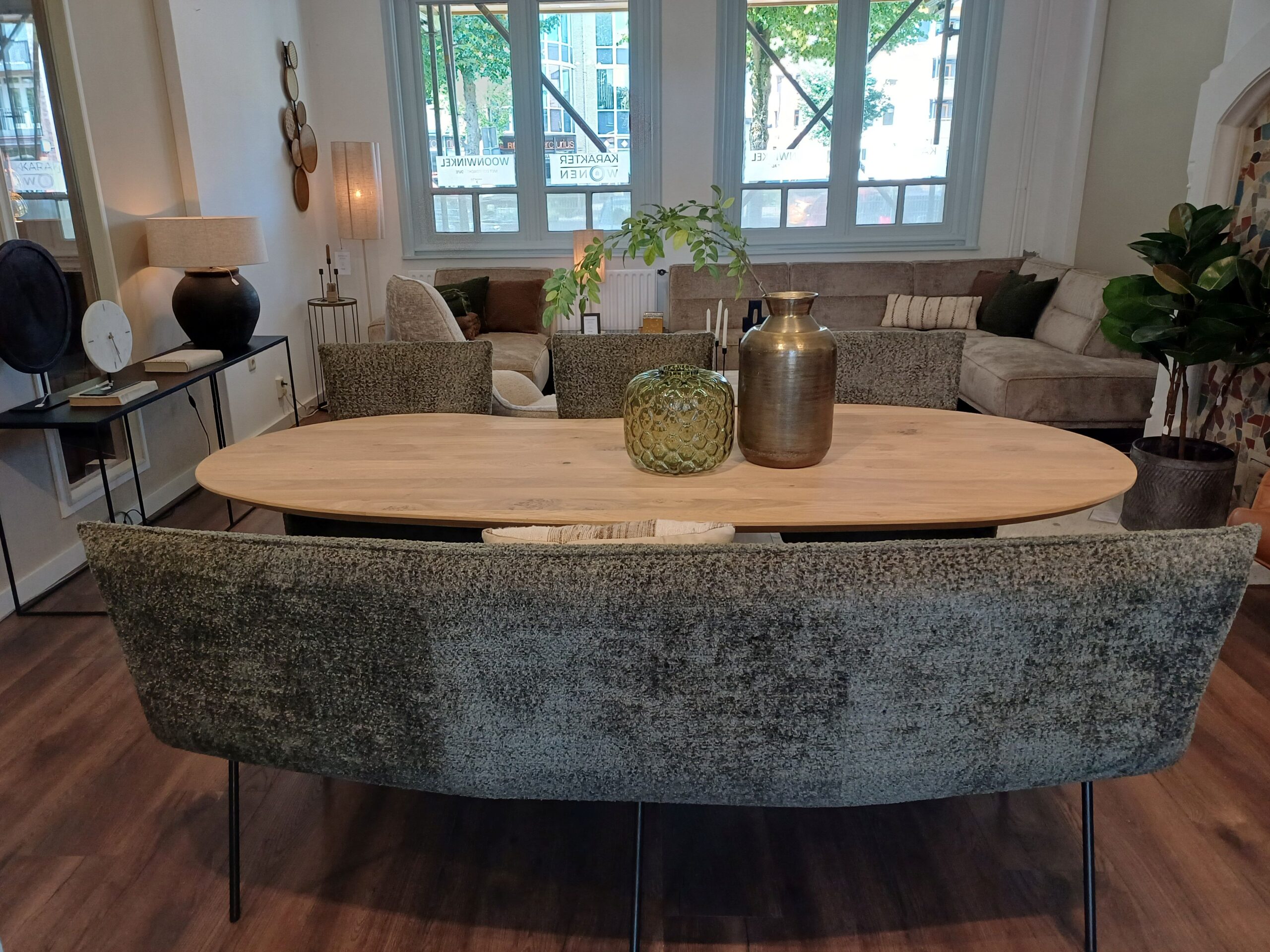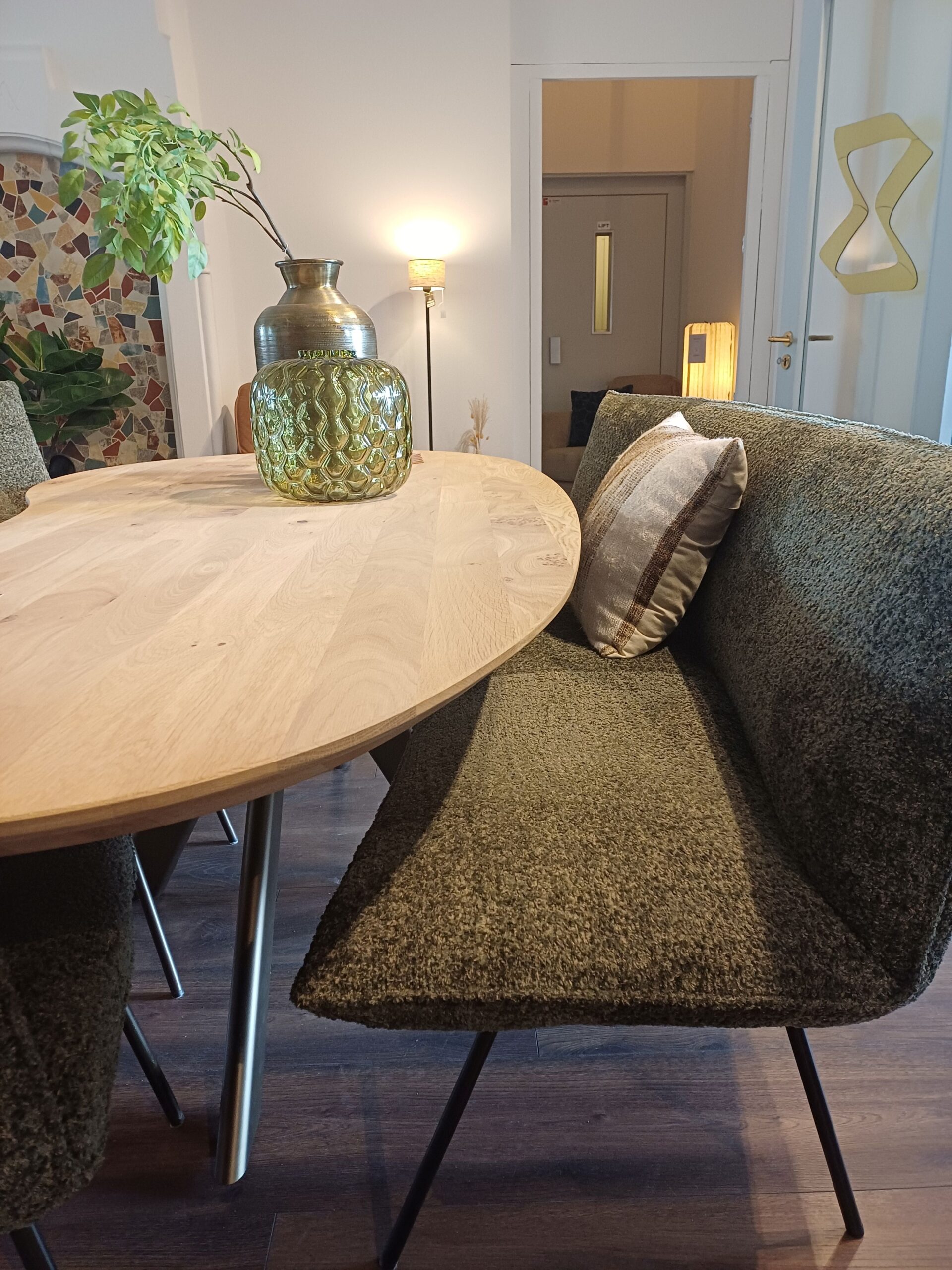 Categorieën: Banken, Stoelen Eetkamerbank Simba Ovaal van H.E. Design is er in meerdere afmetingen.Ook leverbaar in rechte uitvoering.Leverbaar in diverse stoffen of leder.Poten metaal leverbaar in meerdere kleuren.Prijsindicatie: 200cm breed zoals afgebeeld € 1495,-Gerelateerde producten Bank Zilt Lees meer Bank Zuiver Lees meer Bank Noah Geo Lees meer